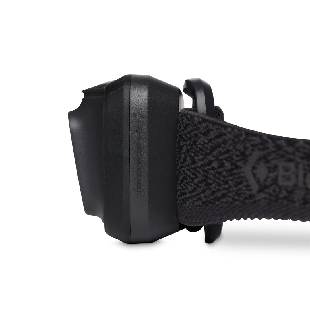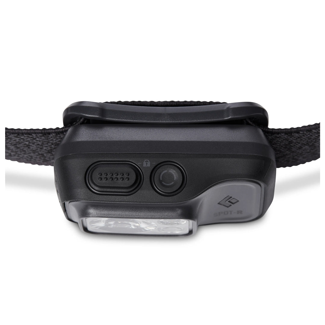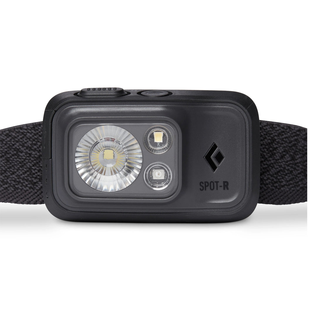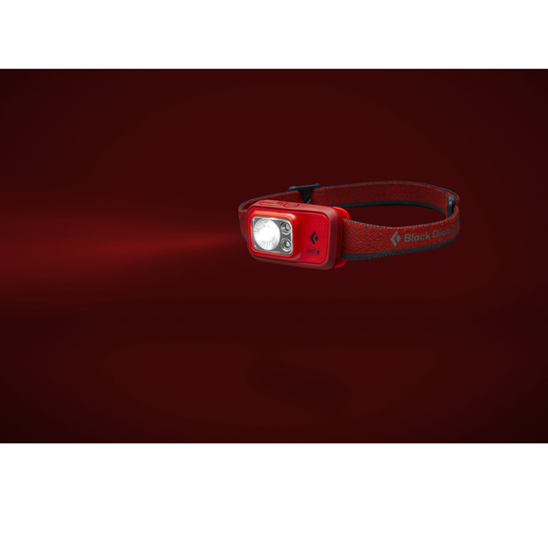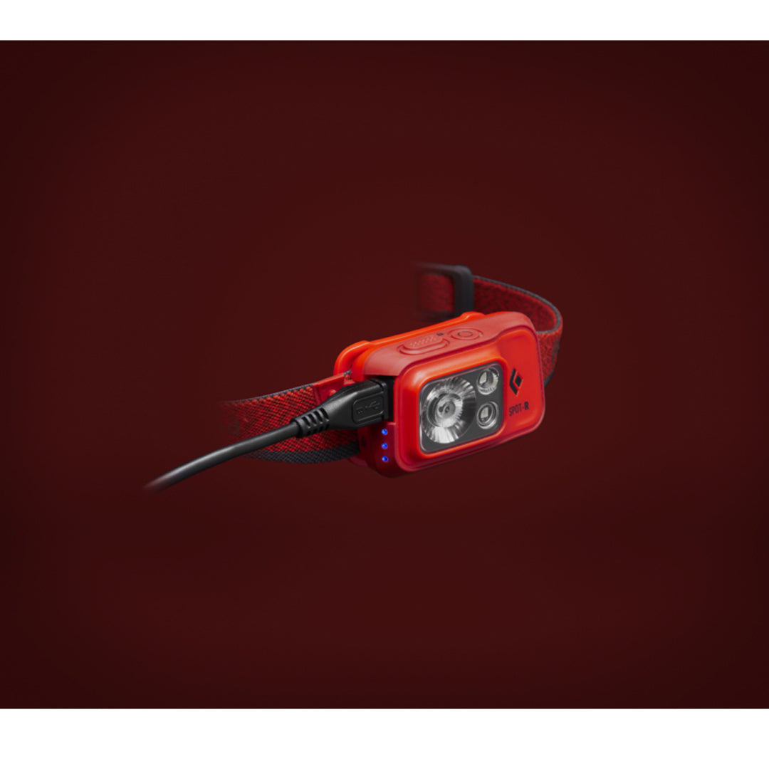 Black Diamond Spot 400 R 提供 400 流明照明,採用更小巧高效的設計。緊湊機身搭配低調外型,配戴更平衡且符合人體工學。操作介面設有第二開關,可輕鬆切換透鏡模式。採用 micro USB 充電的 BD 1500 鋰離子電池供電,並配備以 Repreve 再生紡織品製成的環保彈性頭帶。升級光學效率不僅提供更亮、峰值更高的照明,更節省電力,可透過六段式三 LED 電量指示燈輕鬆掌握剩餘電量。具備周邊照明功能,適用營地整理裝備、烹飪、閱讀等近距離活動。IP67 防水外殼,亮度記憶功能可記憶關閉前亮度設定。搭載 PowerTap 技術,可即時調整亮度。
