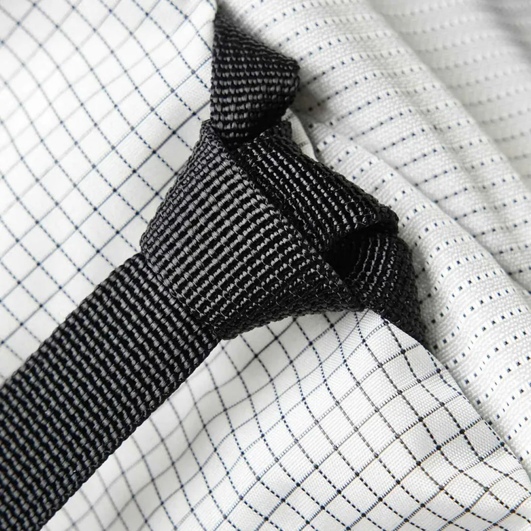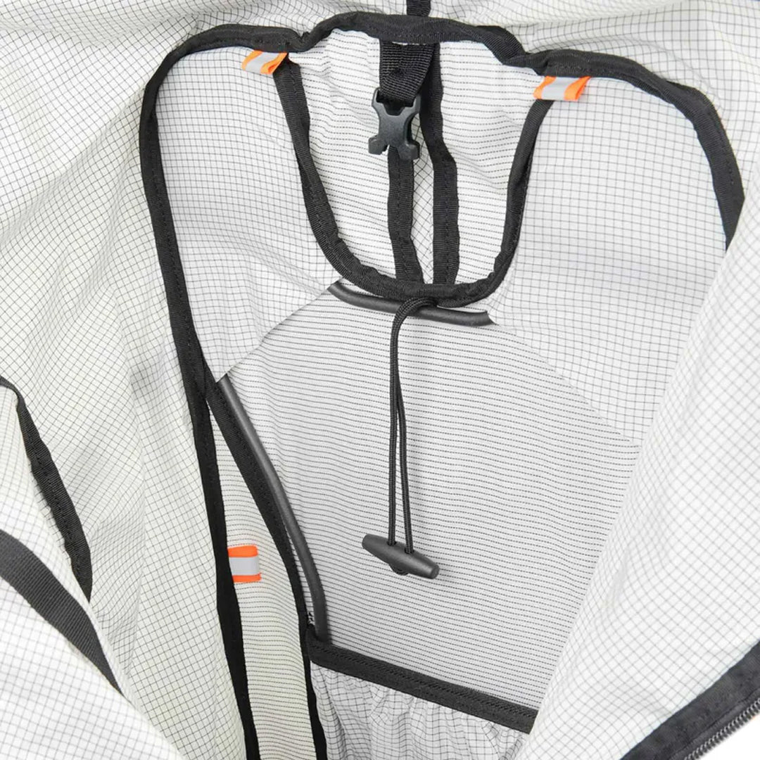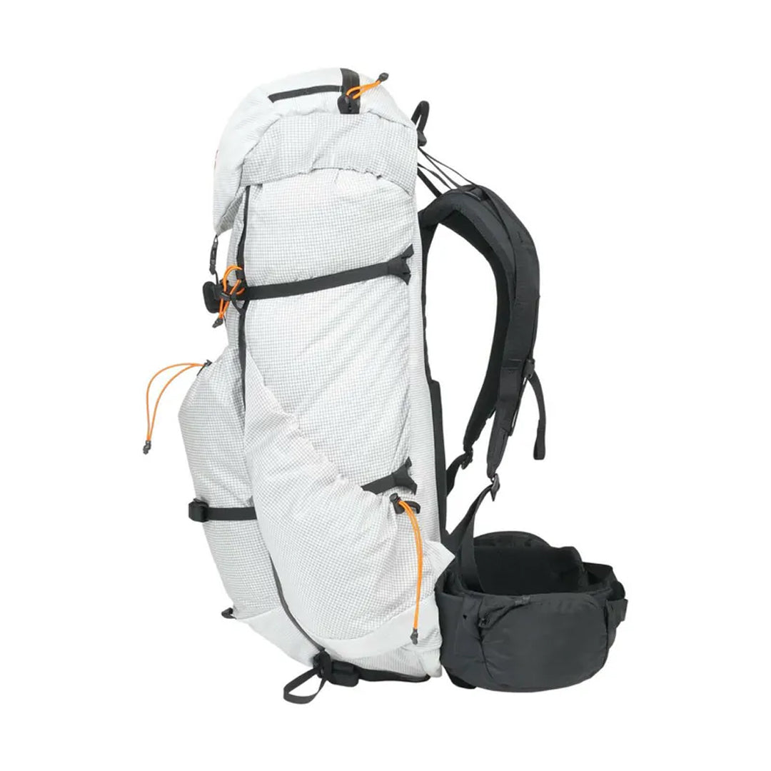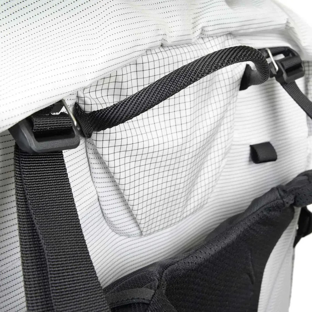 轻量的 Ultra-PE Birdseye 和耐用的 Recycled Robic Ripstop 面料在不牺牲耐用性的前提下减轻了重量。顶袋的口袋设计、足够的外部口袋和可拆卸的铝合金支架可根据不同的装备需求提供背负选择,并且还能减少背包的重量。