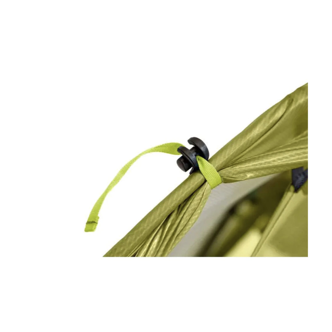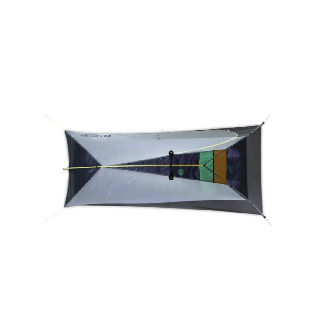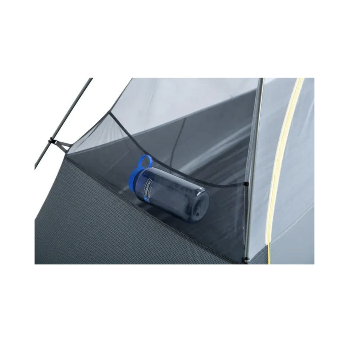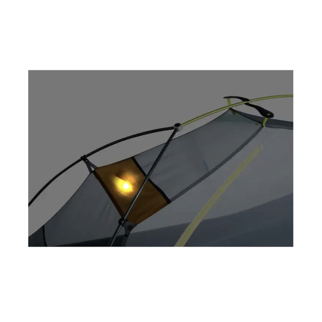 新設計有頭頂的 Nightlight Pocket™、Gatekeeper™ 的單手可繫上扁帶和方形 Divvy Cube™ 收納袋,增加了便利性及舒適性。三角位的反光營線和邊角支柱也增加了營柱底部的體積,並保護睡袋免受帳篷壁冷凝的影響。角落處的三角形體積膨脹蓋板和支柱增加了腳部的體積,保護睡袋免受帳篷壁冷凝水的影響。