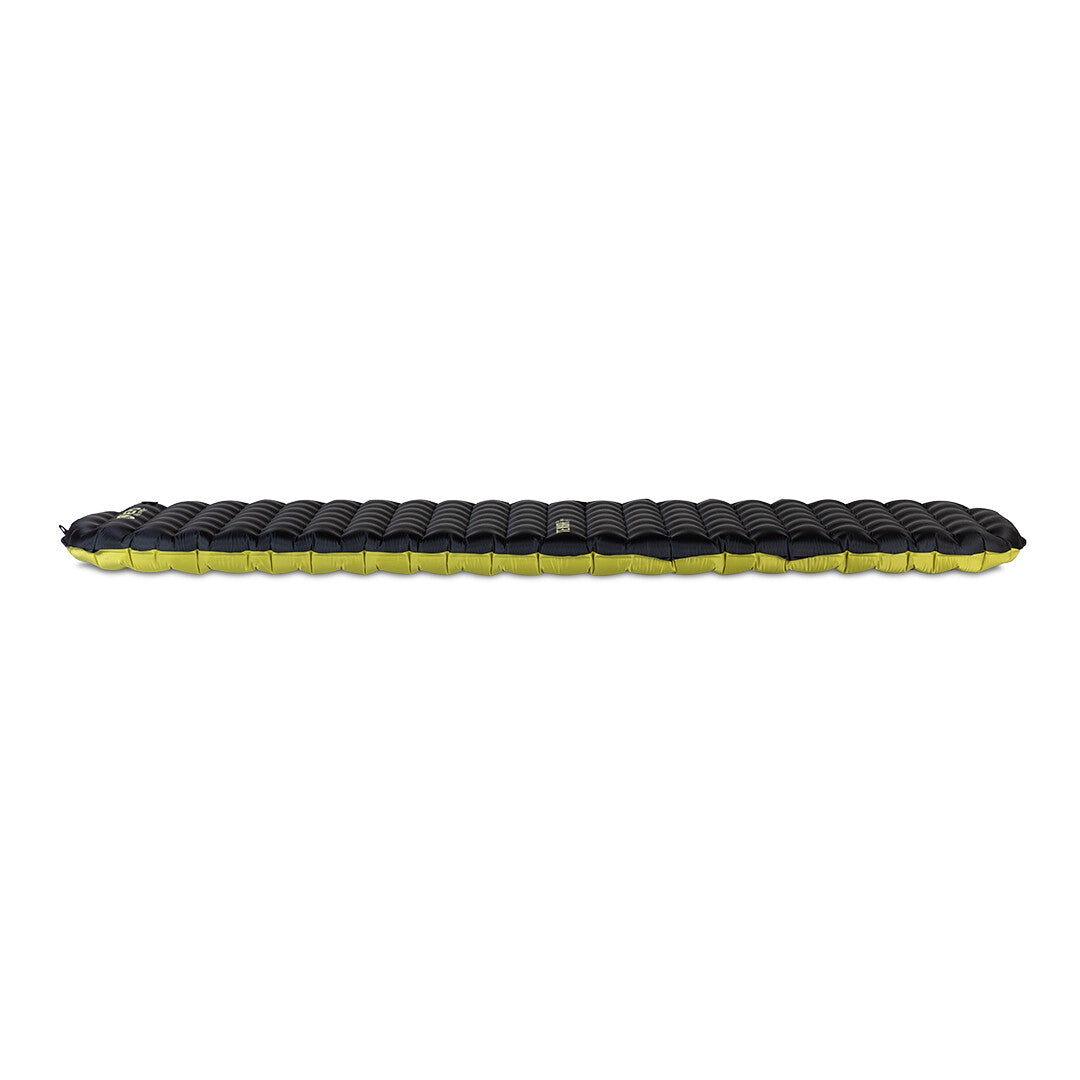 Tensor™採用我們標誌性的專有Spaceframe擋板結構構建,在超輕量包裝中提供安靜、支撐性的舒適感。內部架構提供了無與倫比的穩定性和重量分佈,使用低拉伸模切桁架消除彈性,同時保護手肘和臀部免於刺入地面。新的超薄膜內層可減少對流並增加R值。隔熱版本採用多層懸掛式熱鏡金屬化薄膜,與競爭對手相比,睡墊更輕且非常安靜。Tensor現在採用100% bluesign®認證的再生20D聚酯布料。它配備了我們的Vortex泵袋,與我們定制的Laylow零剖面閥門配合,可輕鬆充氣並提供個性化的舒適度。