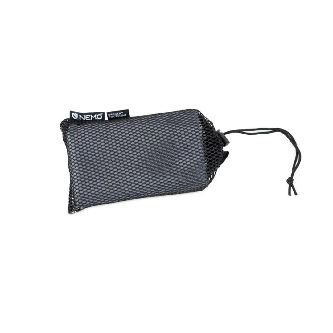 環保耐磨材質:此款地墊專為 NEMO Dagger OSMO™(2025 現行版本)設計,採用 100% 再生且經 bluesign 認證的 75D 聚酯布料製成,不僅體現環保理念,更具備極強的耐磨性能,同時防水性佳,能有效保護帳篷底部,防止其與地面直接摩擦而導致損耗。