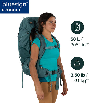 Renn 50 采用简单的设计和强大的功能集,提供了一个高品质的携带方式,针对女性量身定做,无论背包客的经验水平如何,背包客都不会再犹豫。 采用注塑成型的梯子锁躯干调节功能,可轻松调整对准。 是 bluesign® 认证产品。