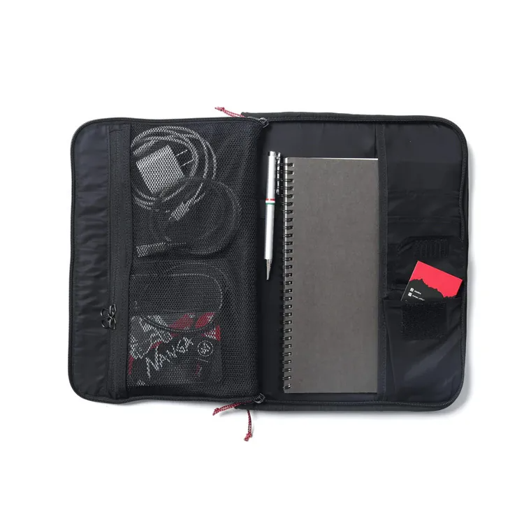 內部細節設計:內側配有拉鍊的網袋,能夠清楚地收納名片、卡片等小物件,既方便查找又能防止丟失。同時附帶筆插,可固定筆類用品,避免筆在收納袋內滾動。