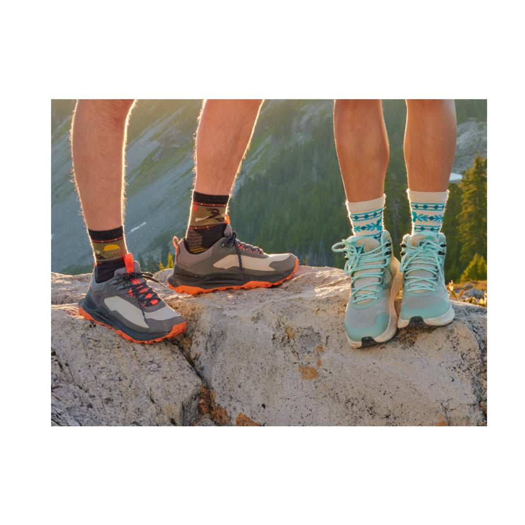 採用55%美麗諾羊毛與再生尼龍混紡,結合Indestructawool™耐磨技術提升耐用性。4 Degree™ Elite Fit四向彈力系統增強貼合度,針對性避震墊提供足部保護。網狀通風區提升透氣性,無縫線襪頭設計減少摩擦。女性專屬版型,美國製造。